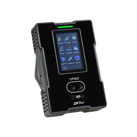 El equipo VF600es una terminal de identificacion de rostros para control de asistencia, con los modos dereconocimiento facial,PINy RFID.Conel algoritmo deidentificación dela caramás recientey la tecnologíaoptimizada,que puede contener 800plantillas decara,sin dividir en gruposy la verificacióncompletaen menos de 1 segundo.La comunicacióna través de Wi-Fi, Ethernet yUSB(host y cliente), se puedegarantizaruna conexión sin problemasy la transferenciade datos.Todoslos ajustes se puedenhacer fácilmenteen lapantalla de 3 pulgadastáctil TFT.Se ha elaborado diseño elegante, fino y delgado.